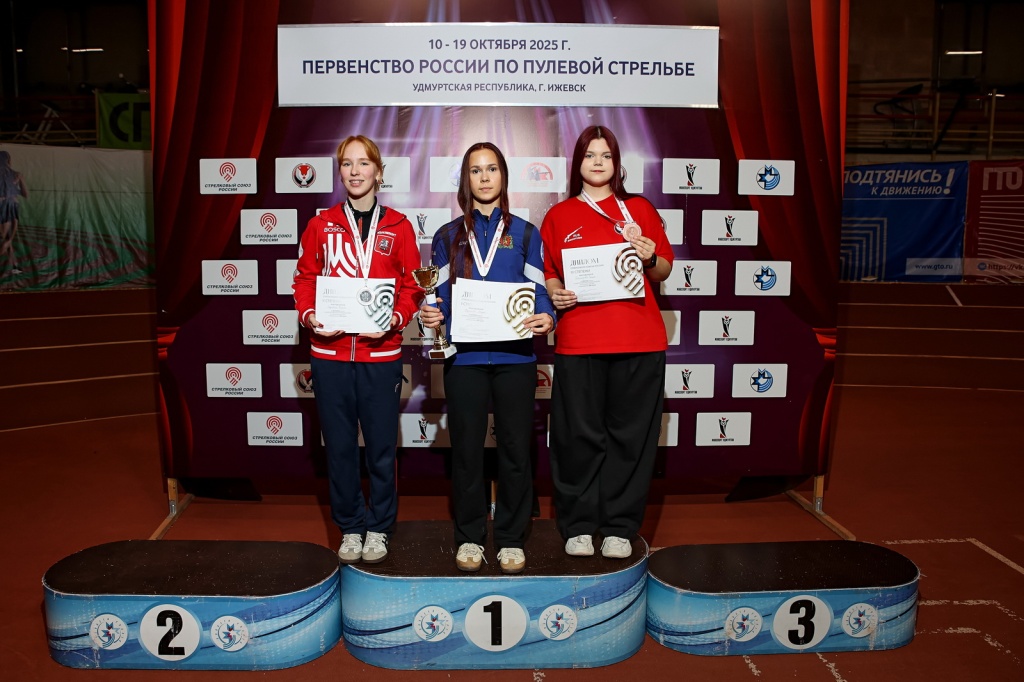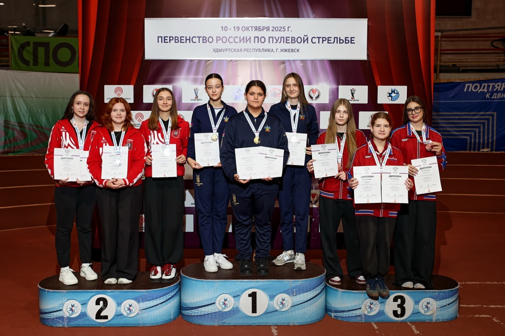 У девушек всё было намного сложнее. В бронзовом медаль-матче снова участвовала Московская область, причём, сразу в виде двух команд. И снова ближе к завершению матча, когда в одиннадцатом раунде у 15-летних Ангелины Глазковой и Валерии Калачёвой и 13-летней Анны Топорковой был тройной матч-пойнт, 16-летние Арьяна Дамдинова и Варвара Гайбун 15-летняя Екатерина Казьмина взяли три раунда подряд и сравняли счёт! Последние выстрелы – разница в 0,7 очков – победа Ангелины, Анны и Валерии!